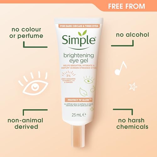 Specification: Simple Protect ‘n’ Glow Brightening Eye Gel Reduces Dark Circles and Relieves Screen-Stressed, Tired Eyes for Sensitive Skin 25 ml